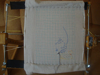 Сначала нужно прикрепить канву на нижнюю планку. Потом опустить верхнюю, и прикрепить канву "в навис" (чтоб канва НЕМНОГО провисала), и затем крутить барашки.